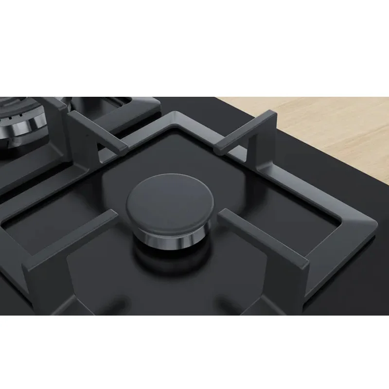 صفحه گازی توکار بوش مدل PPH6A6B20 دارای صفحه ای کاملا مشکی است که جنس آن از شیشه سکوریت حرارت دیده می باشد و نشکن است. این صفحه گازی مجهز به ۴ شعله می باشد که بر روی هر یک از آن ها به صورت مجزا صفحه ای چدنی قرار گرفته است. در ضمن جنس به کار رفته بر روی سرشعله ها هم از جنس چدن می باشد.