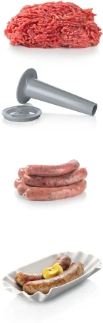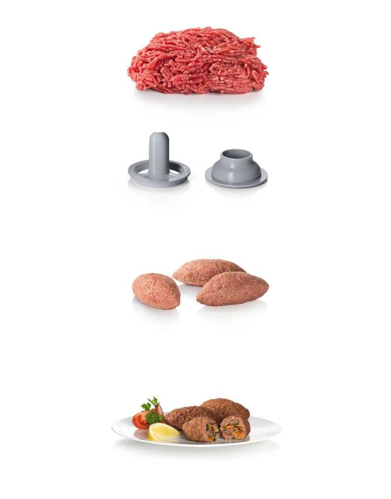 این دستگاه دارای قطعه کبه ساز و سوسیس ساز بوده که توسط آن سوسیس و کبه های سالم خانگی میتوان تهیه و با خیال راحت استفاده کرد.