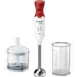 تیغه های تمام استیل ضد زنگ با قابلیت برش گوشت، سبزیجات، میوه، خشک بار، آجیل، پنیر و موارد مشابه است. طراحی فوق العاده شیکی دارد و منطبق با موازین ارگونومیک ساخته شده است همچنین ترکیبی از دو رنگ سفید و قرمز است.گوش کوب و خردکن برقی بوش قابلیت انجام چندین کار تنها با استفاده از یک موتور را دارد.